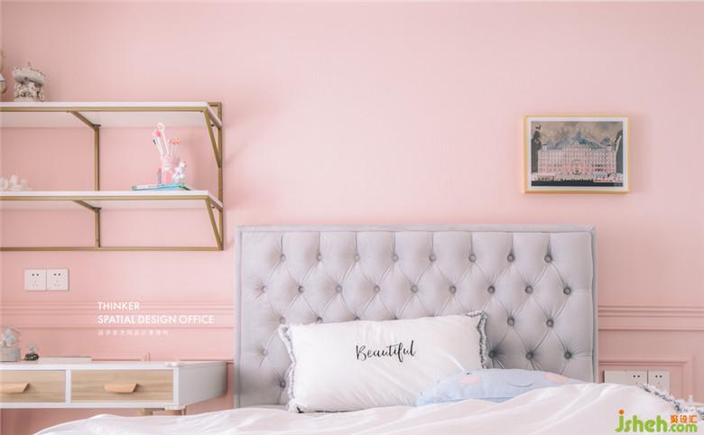 墻布的靈感來(lái)自法國(guó)酒店的細(xì)節(jié),質(zhì)感的機(jī)理和紋樣,將女性化的柔和質(zhì)感滲透到每一個(gè)角落,散發(fā)著浪漫的夢(mèng)幻色彩。