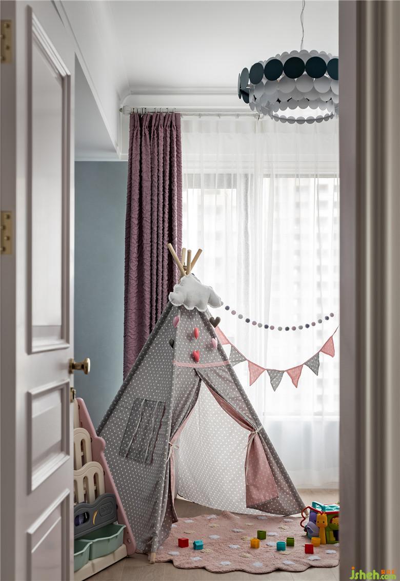 · 寶貝剛滿1歲,給她一個(gè)可以肆意探索的空間吧!扔掉復(fù)雜的家具,安全溫馨的平坦空間對(duì)寶寶最友好??蓯鄣谋睔W風(fēng)帳篷和兒童書架,用低保和度的莫蘭迪色系為寶貝打造一個(gè)極具安全感的小天地。裝修設(shè)計(jì)