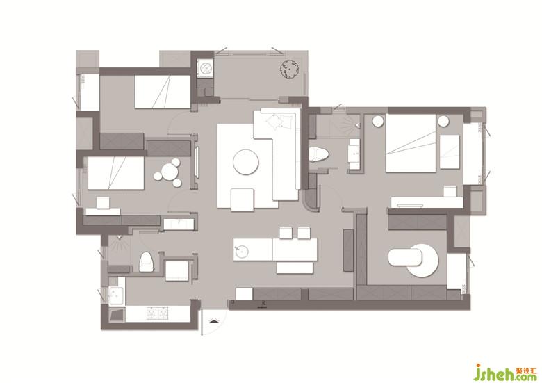 · 低飽和度色系,往往能營(yíng)造柔和舒適的視覺感。墻面是很特別的紫色,搭配同色系窗簾,有種篤定的優(yōu)雅。