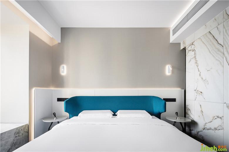 · 對于臥室來說,吊燈和射燈都過于直白,而柔和的線型燈帶會帶來柔軟的情緒,所以床頭背景用的皮質(zhì)硬包配合燈帶,用光暈不動聲色地勾勒出一個遠離喧囂的靜謐空間。
