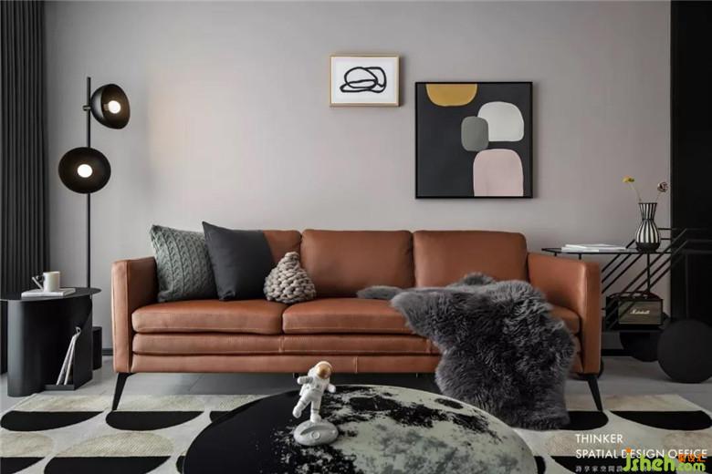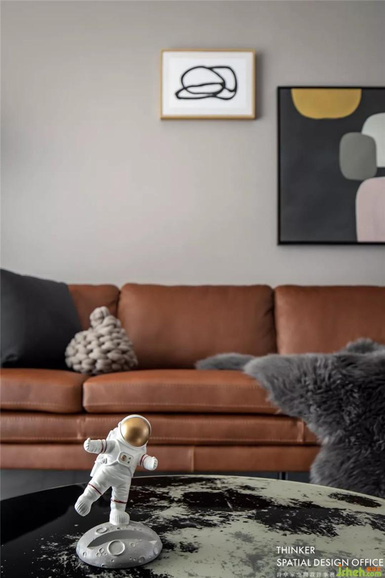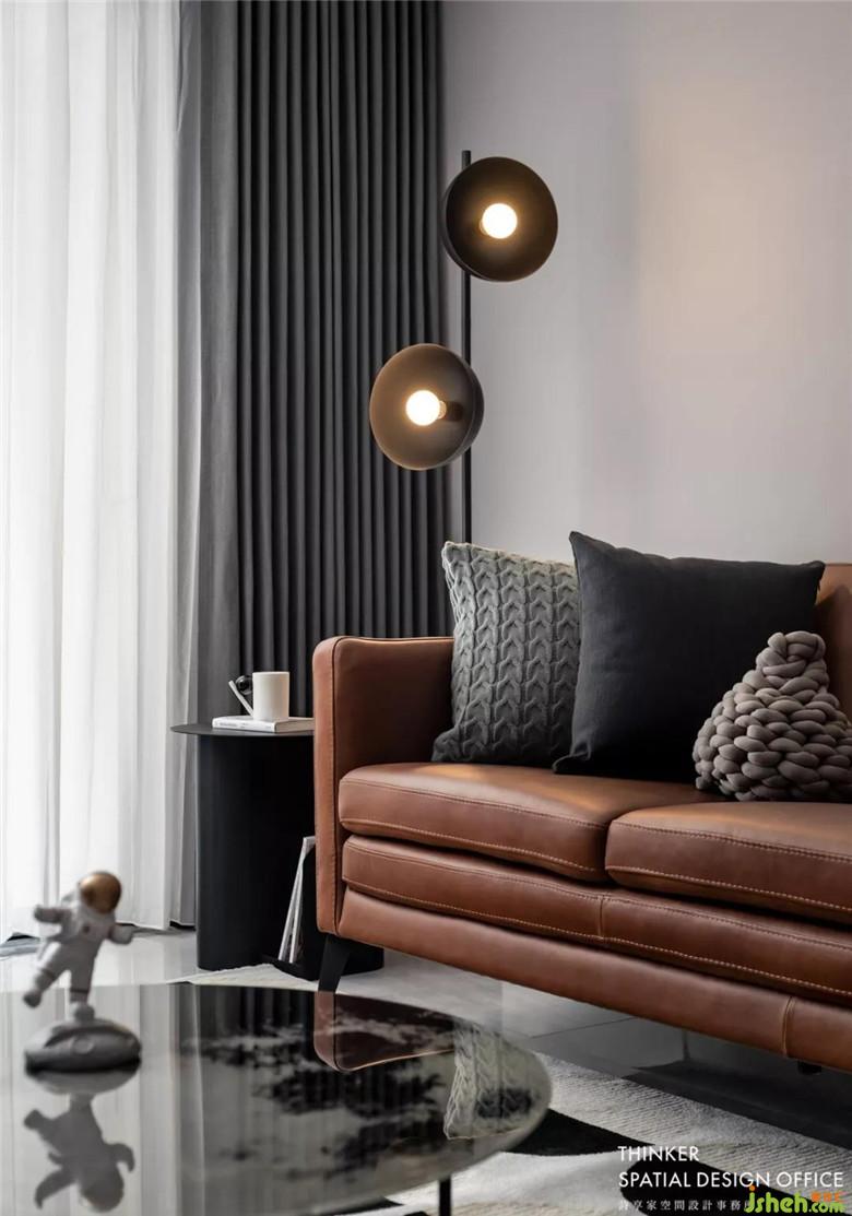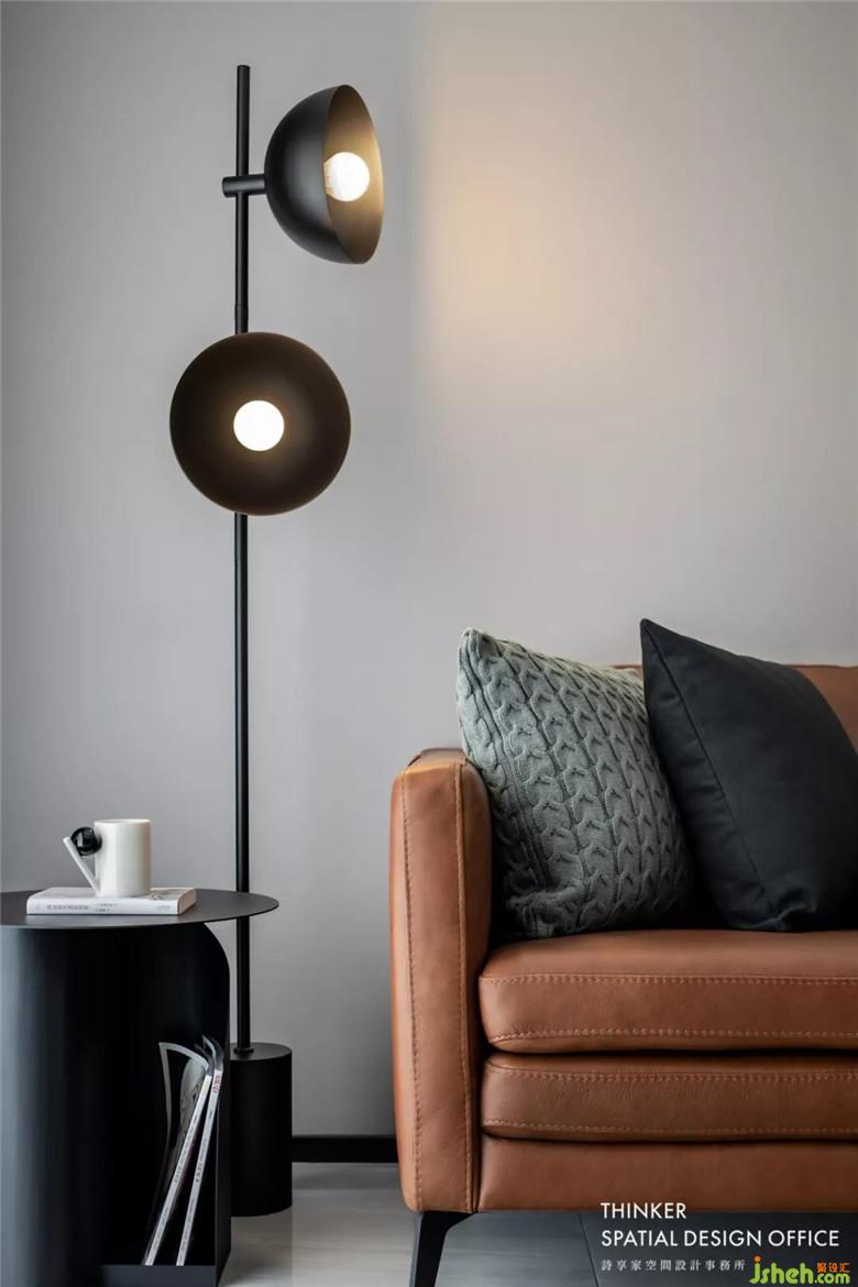 客廳無(wú)主燈設(shè)計(jì),點(diǎn)光源讓照明更加勻稱(chēng)柔和。沙發(fā)旁的黑色喇叭落地?zé)羰莇ada一眼看中的,自帶時(shí)尚科技感,巧妙地與月球茶幾有了呼應(yīng)。