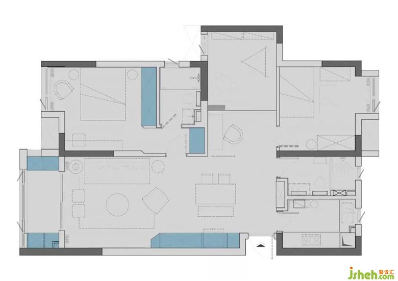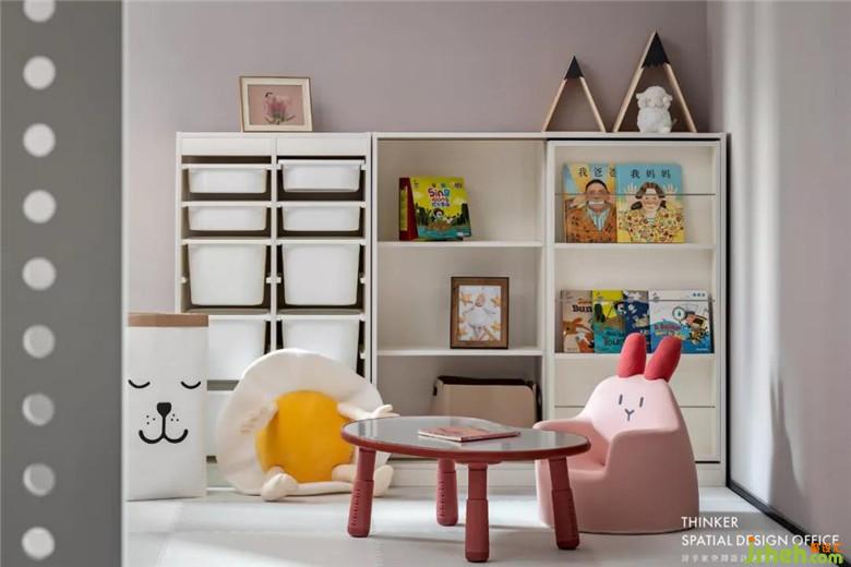 dada原本想把這里做成衣帽間,但是設(shè)計(jì)師考慮到未來寶貝的需求,把它變成了游戲房,未來必定會是寶貝最愛的小天地。把過道擴(kuò)進(jìn)去之后,在此處設(shè)計(jì)了一組高柜,儲物空間和寶寶玩耍的空間同時(shí)實(shí)現(xiàn)了。好的設(shè)計(jì),就該讓空間隨著主人一起成長。
