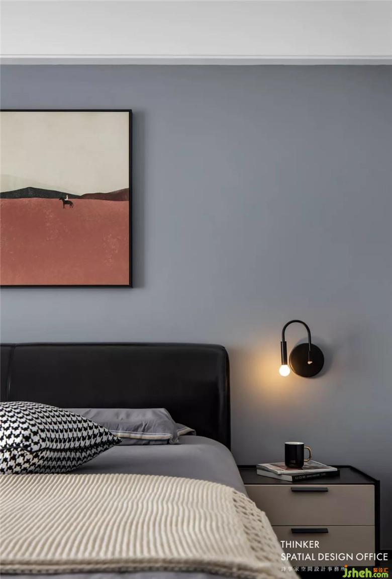 灰藍色的墻面,灰藍色是藍色中的優(yōu)雅紳士,裝修公司搭配著有格調(diào)的壁燈,流露出靜謐的溫柔,像是愛與生活的沉淀。