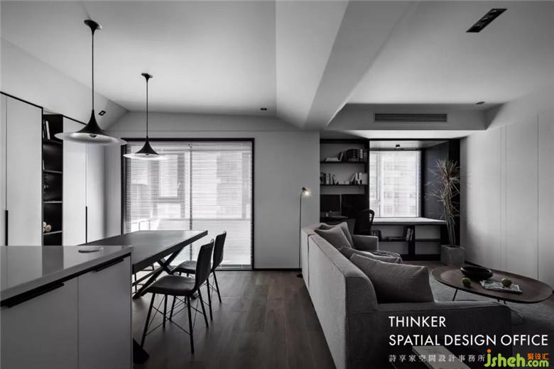 吊頂我們以流暢延續(xù)而具有律動(dòng)的折線語(yǔ)言描繪,勾勒出幾何形狀,裝修公司增加了空間的層次感。同時(shí)我們多處用百葉簾來(lái)調(diào)節(jié)室內(nèi)的光線,為整體空間帶來(lái)光線變化的美感。
