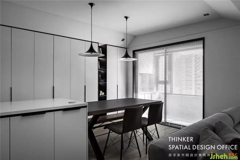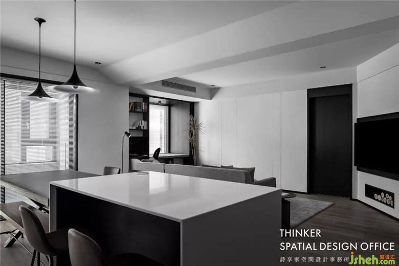 餐桌+島臺(tái)的流暢動(dòng)線,帶來(lái)寬敞舒適的空間感受,聚餐、party、西點(diǎn)、品酒,全都能hold住。