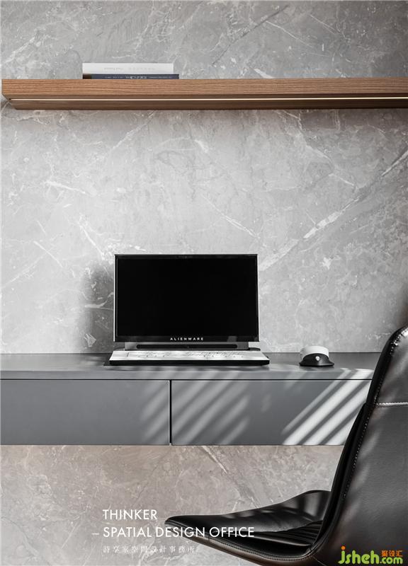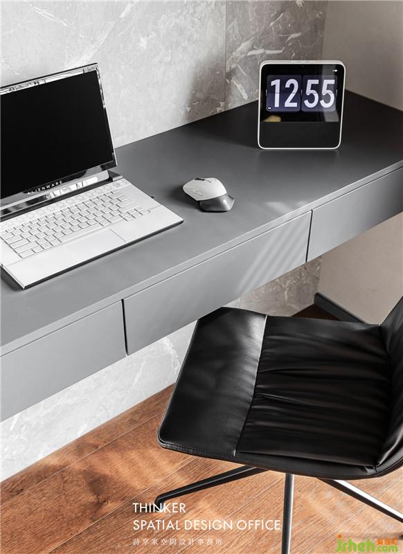 · 書桌高度根據(jù)屋主身高打造,懸空設(shè)置讓屋主坐下時雙腿有了放松空間,也便于掃地機器人工作,減少家務(wù)負(fù)擔(dān)。