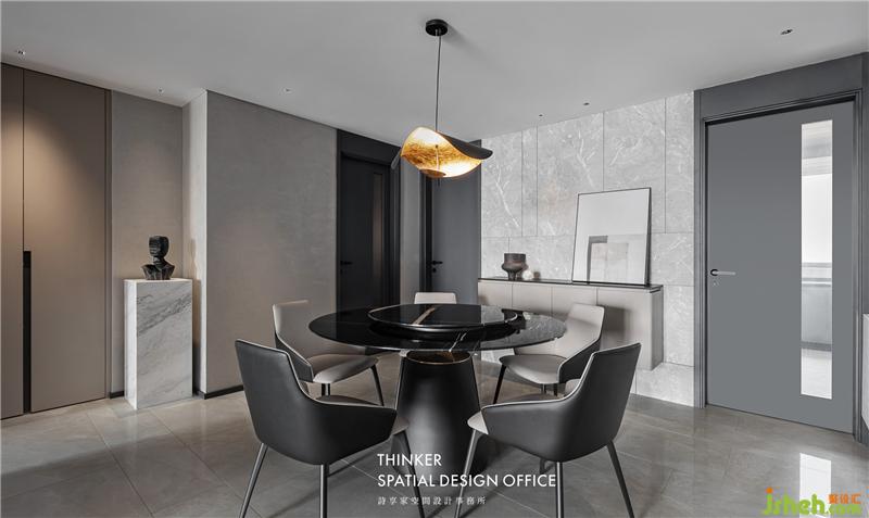 · 大理石餐桌、皮質(zhì)餐椅,方便清潔打理,也為空間增添現(xiàn)代時尚感。