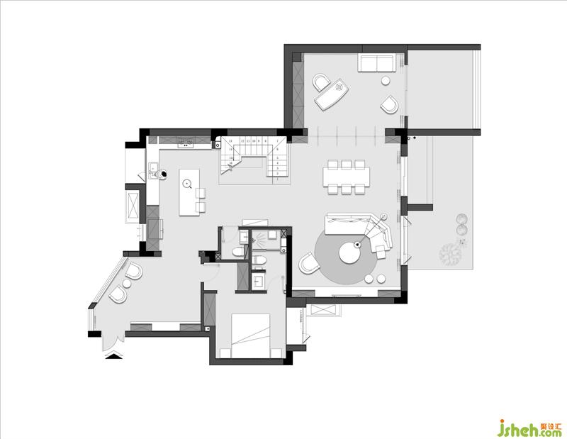 · 沙發(fā)不靠墻是客廳的一大亮點,打造出靈活的“回”形動線;用沙發(fā)充當隔斷來劃分空間,保持空間的通透性。在餐廳吃飯時,也可以享受客廳100寸大屏幕的電視,在家輕松get到影院的既視感。