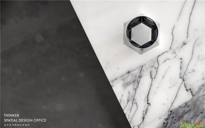 · 旋轉門兩側做了通頂的柜子,封閉式+開放式組合,儲物空間和飾品展示空間都能滿足,實用而美觀。