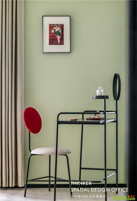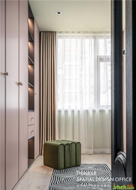 · 將之前的一個房間改造為衣帽間,與主臥連為一體,提高生活的便利性。富有生活感的空間,需要繽紛的顏色點綴,衣帽間運用粉色和綠色的碰撞,展現(xiàn)了獨特的現(xiàn)代室內(nèi)設(shè)計,將舒適和功能帶入日常。