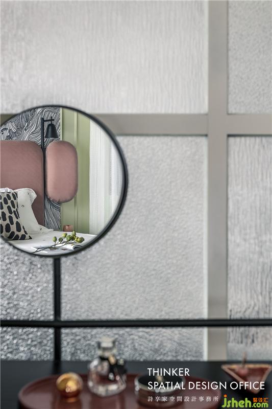 · 幾何造型的梳妝臺,優(yōu)雅利落地傳達空間的極簡主義。