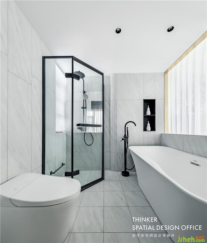 · 濕區(qū)采用的是經(jīng)典的黑白配,給人簡潔干凈之感,性冷淡風中帶一點輕奢風。超大容量的浴缸,讓你輕松的卸下一身的疲憊。