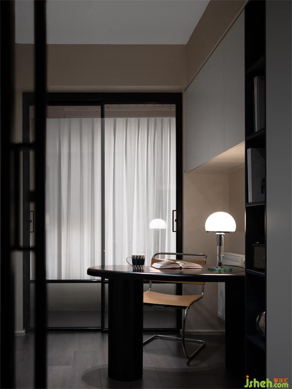 書(shū)房?jī)啥司O(shè)玻璃移門,陽(yáng)臺(tái)、書(shū)房、客廳形成環(huán)形動(dòng)線,書(shū)房成為公共活動(dòng)區(qū)與私密睡眠區(qū)的過(guò)渡空間。