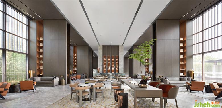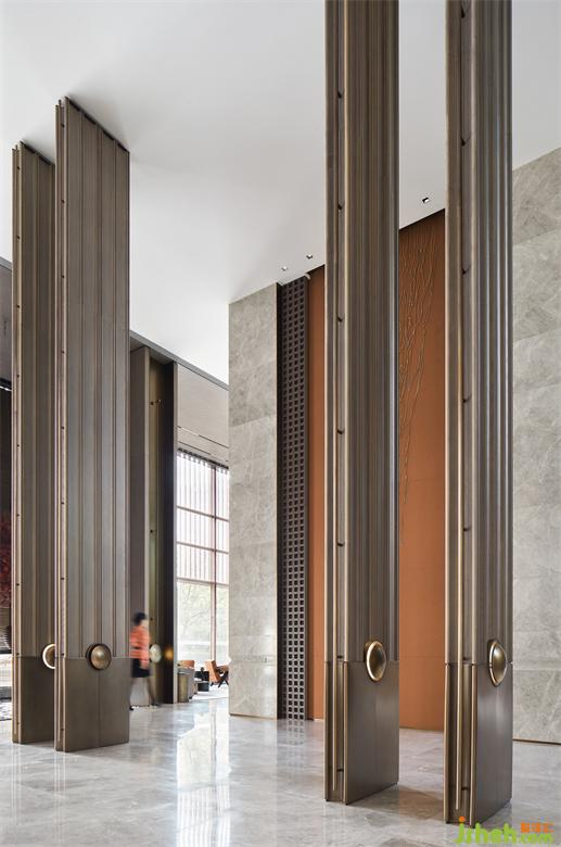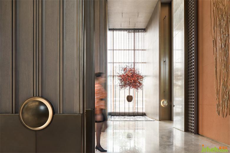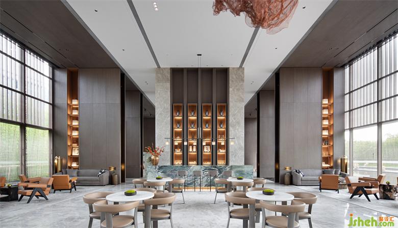 洽談區(qū)域的開合展現(xiàn)著東方禮序的中軸秩序,動(dòng)線布白疏密有致,重重通高落地木質(zhì)屏風(fēng)間隔出左右各兩個(gè)開間,柏悅公館營銷中心設(shè)計(jì)勾勒著空間序列的厚重與雍容。