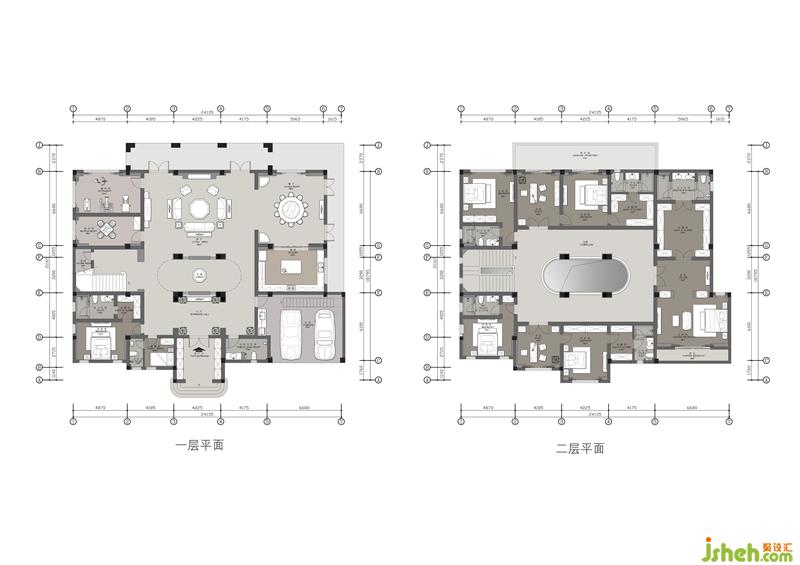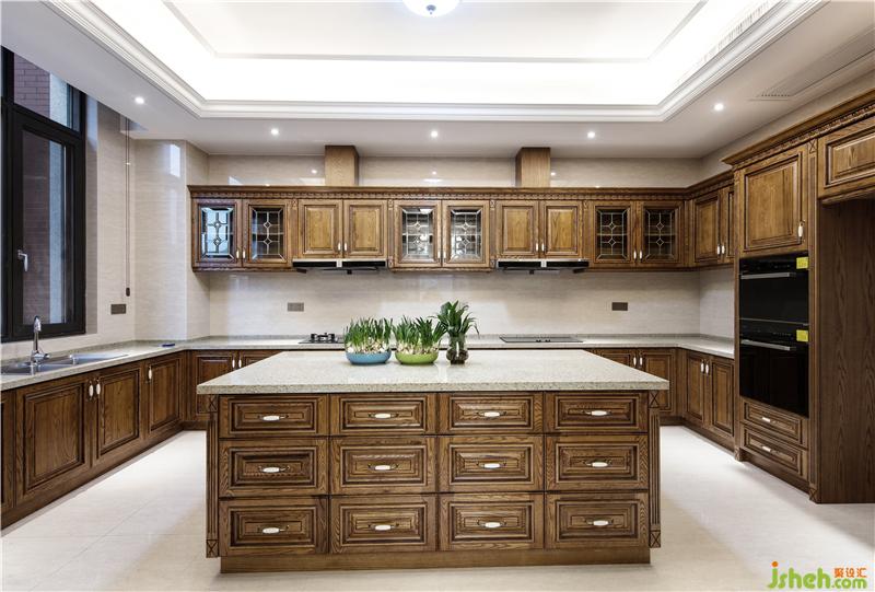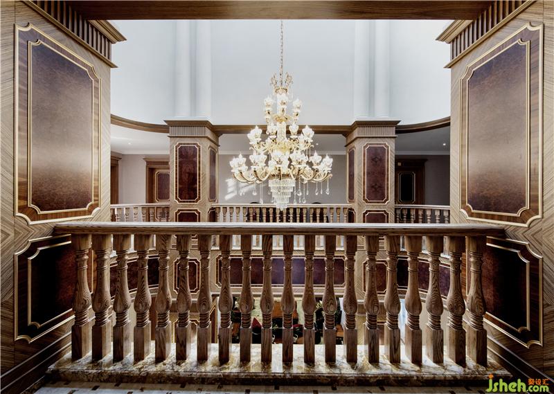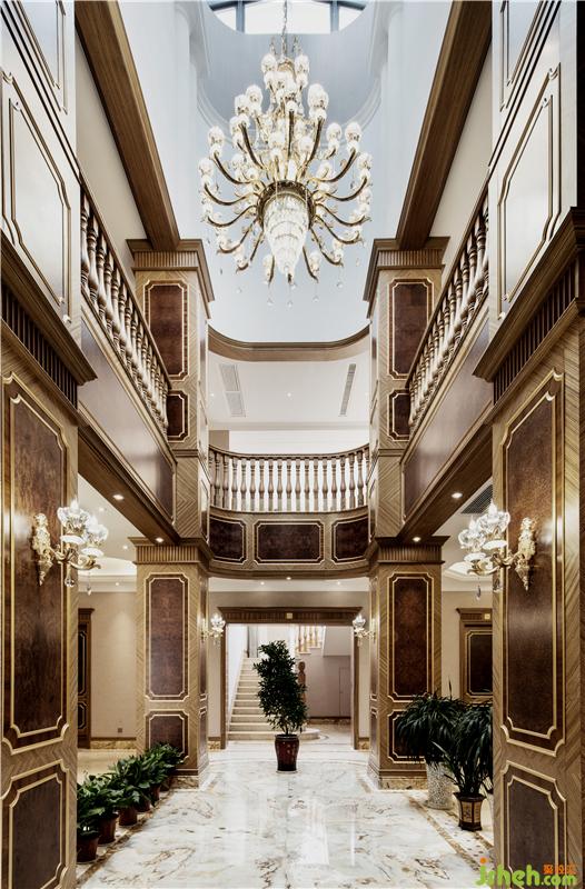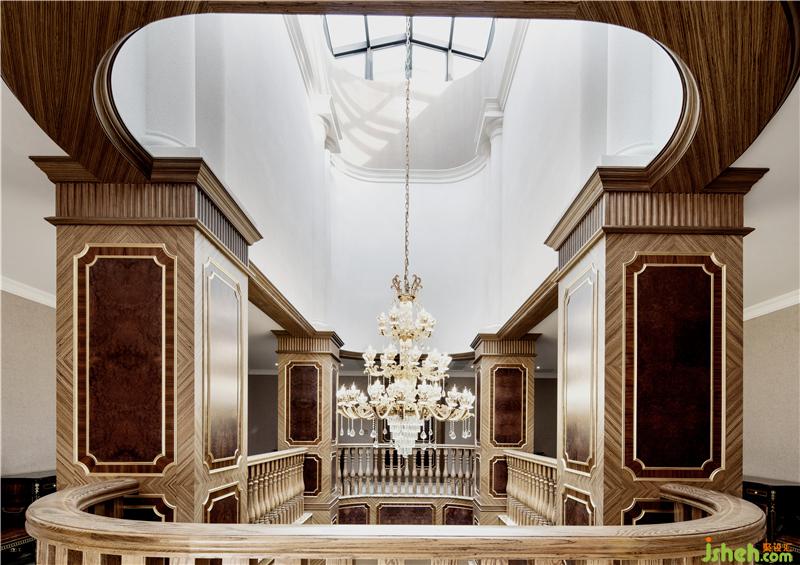 本案位于武漢湯遜湖畔,面積近千平方米,平面格局呈近乎嚴(yán)謹(jǐn)?shù)妮S線關(guān)系,業(yè)主希望擁有一個地道西式的宅子,而非市面泛濫的“偽歐”、“簡歐”,對于自幼在漢口老租界長大的設(shè)計師,這似乎不是問題。設(shè)計師為這座宅子設(shè)計了一個令人驚艷的中庭,中庭四周的護(hù)墻板采用木皮手工鑲嵌拼貼工藝,色調(diào)到位、尺寸精準(zhǔn),是設(shè)計師在自己的工坊親自為業(yè)主打造,貴氣而不浮夸,整個中庭面積不大,到玻璃天棚卻有著近18米的垂直高度,使之成為整棟房子的“精神堡壘”、生活場景的中心。