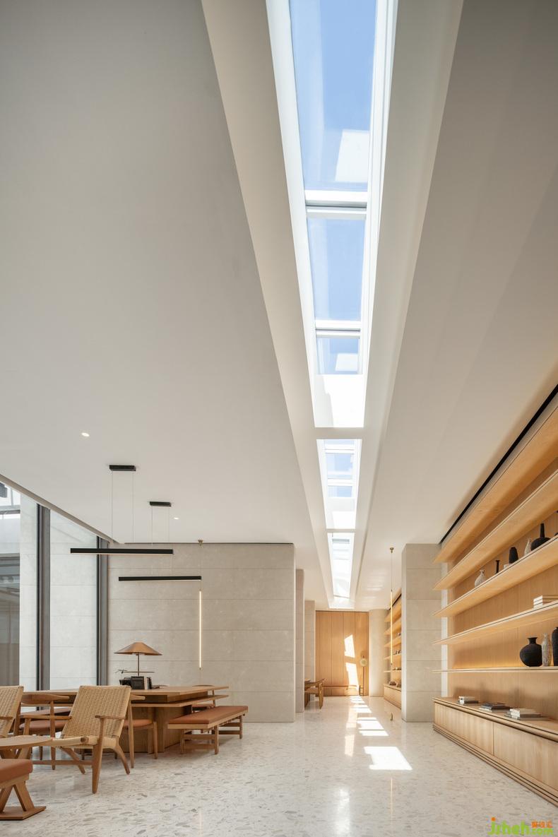 物的質地,在畫中成為油彩堆疊的筆觸,濃烈厚重、細致流轉,描繪出單色的重量。藝術中心設計抽象主義創(chuàng)作的精髓在于透過色彩與量感,即便不是真正身處無垠荒漠,仍可升起蒼茫而渺小的情懷,體現(xiàn)在建筑里,觀者更能穿梭畫中自由決定琢磨何處。