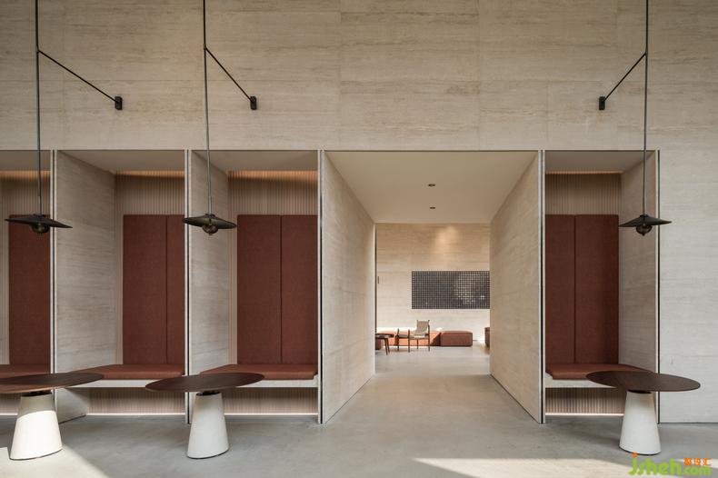 將戲碼頭概念融入建筑停頓點的轉(zhuǎn)借手法,亦應用于材質(zhì)選擇。從前里分民居熟悉的磚墻屋瓦,我們改以俯角視之,節(jié)錄這片城市記憶成垂直展開的壁面裝置,藏在現(xiàn)代建筑量體的折痕中,等著與識得的人久別重逢。