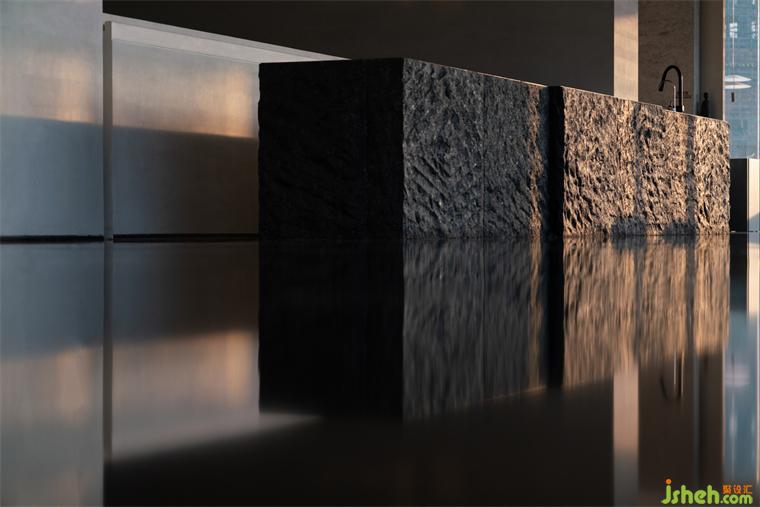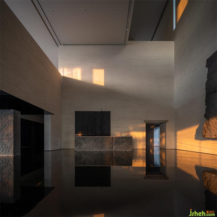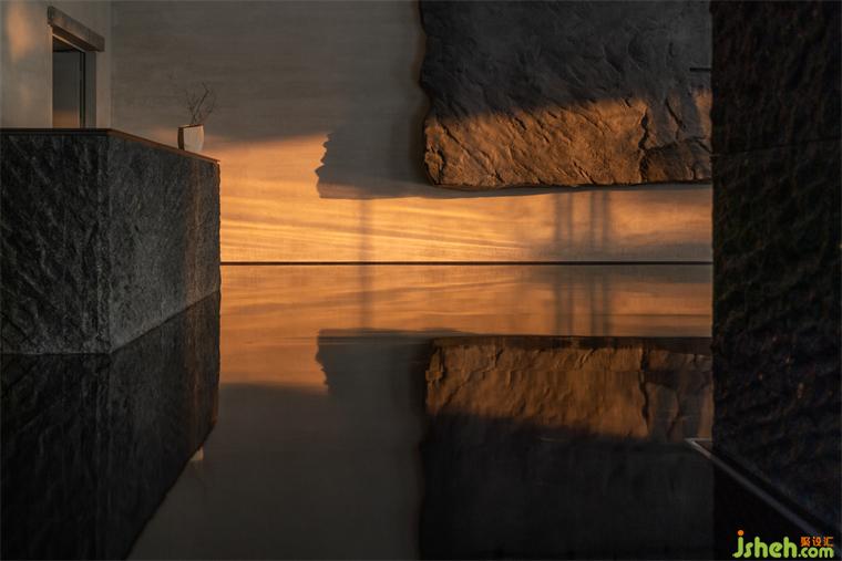 設計師以此為靈感,裝修設計入口以原石切砌山谷縱深,柜臺深鑿石面不僅作為建筑立面,亦為山壁寫意陳列,將自然奇石姿態(tài)化為體驗自然的情緒轉折;入口如鐘擺規(guī)律擺晃的曳影裝修設計,用最簡語法呈現(xiàn)輕舟已過萬重山、搖槳緩緩在水面畫出漣漪,最終仍隱淡于遙遠山腳。