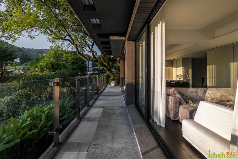 本案長(zhǎng)型基地一側(cè)擁有連貫窗景和帶狀露臺(tái),住宅設(shè)計(jì)熟悉山林的屋主遷至市郊生活仍擇鄰近故宮、一處有山有溪的住所,希望自然曾經(jīng)帶給他們的情懷能在此繼續(xù)生長(zhǎng)。我們將起居環(huán)境視為呼應(yīng)戶外溪林的文本,企圖在故宮藏品間找到表現(xiàn)空間的調(diào)子。