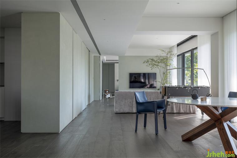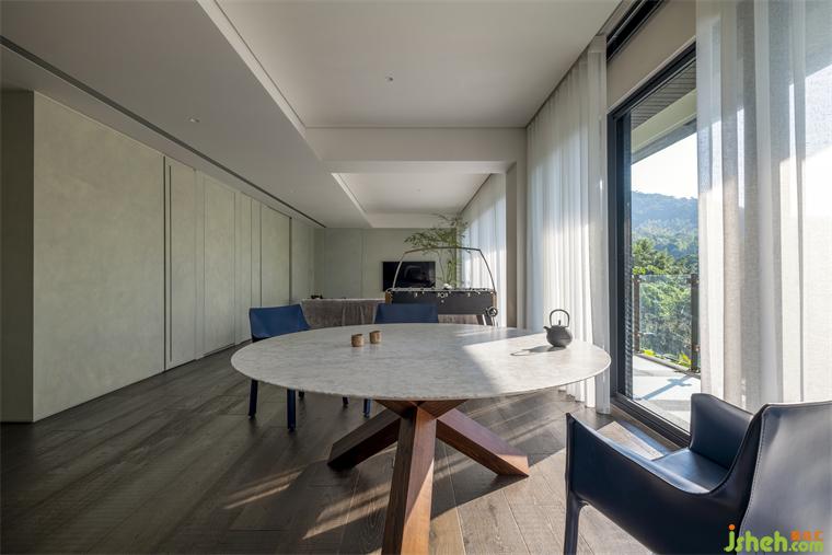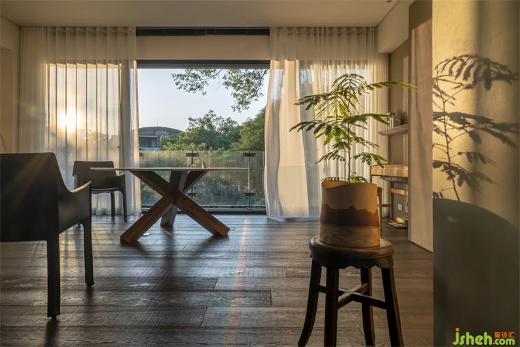 即便有隔間,屋里景色仍是流動(dòng)的,如玉石的靜謐與光潤(rùn)都是一氣呵成。當(dāng)風(fēng)自樹(shù)梢竄入撥動(dòng)映在各處綠影,那是生活倚傍自然的況味,下一刻風(fēng)又靜下,山在畫(huà)外。