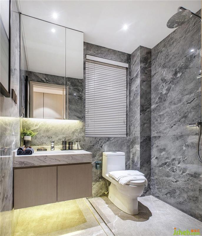 The bathroom and kitchen are mainly practical. The wall is made of high-grade gray marble, and the kitchen is equipped with a whole cabinet to make the most of the space.