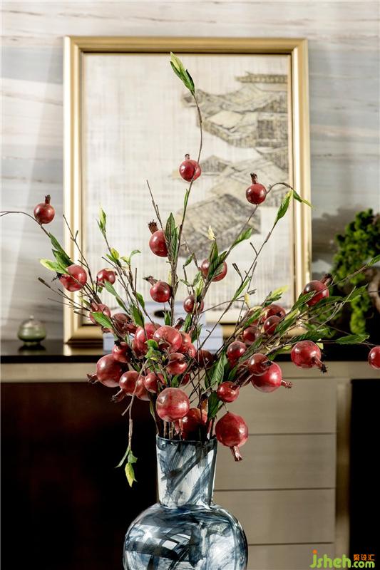 幾支石榴,簇簇花黃,充滿活力