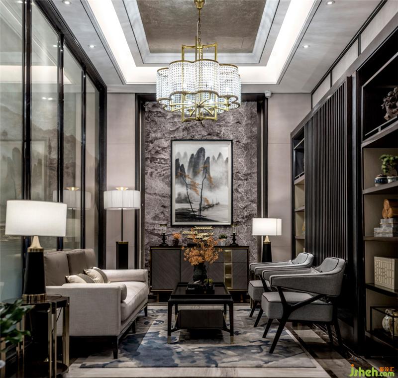 洽談區(qū)巧用別致的花型吊燈,與墻面水墨畫相呼應(yīng),強(qiáng)烈的設(shè)計感并融入傳統(tǒng)中式元素,有形之物在空間中,表現(xiàn)出東方文化的韻味和傳承!
