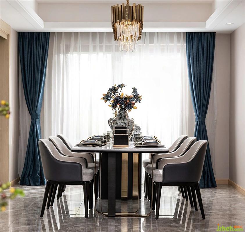 The dreamy blue tone is embellished with gold, and the light luxury of the small home is maximized. The sun shines through the translucent veils, giving the room a softer glow.