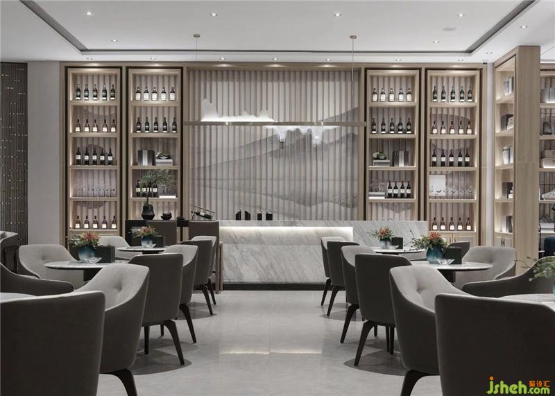 The exquisite chandeliers over the water bar echo the peaks of the wine cabinet background! With the wooden color of the quaint atmosphere of the wine cabinet, the entire space is high and low, the dense contrast, the warm light, the flickering. Space contains profound artistic symbols in a concise form.