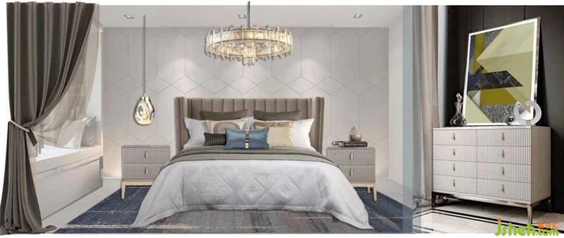 空間承載著生活,每個(gè)人都是生活家。緊張快節(jié)奏的都市生活下,為了讓業(yè)主在回家之后能卸下身上的疲憊,隨心所欲的做自己,主臥整體空間采用了柔和的色調(diào),精致的床品,不同肌理的碰撞,來體現(xiàn)層次感,也豐富了空間展現(xiàn)的視覺效果。電視柜的掛畫成了整個(gè)空間的點(diǎn)睛之筆,仿佛把維港的靜謐與璀璨帶入眼前。樣板房設(shè)計(jì)