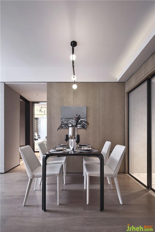 作為家的門面,客廳是最能體現(xiàn)居者個(gè)性的地方。如何讓它靜逸明快又不俗不媚呢?設(shè)計(jì)師的答案是:簡潔的造型、色調(diào)的融合、材料的質(zhì)感,讓人們?cè)谌遮叿泵Φ纳钪?,尚有一方松弛身心之地,以活力和生機(jī)來調(diào)節(jié)精神空間。米白色皮質(zhì)的沙發(fā),灰色玻璃茶幾,吊魚燈都布置得恰到好處?;液诳臻g點(diǎn)綴上活潑型橙色,渾然天成。As the facade of the home, the living room is the place that best reflects the personality of the home. How to make it quiet and unobtrusive? The answer here is: simple shape, blend of tones, material texture! The sofa with the beige leather, the gray glass coffee table, the hanging fish lamp does not seem to have a trace of excess. The entire gray-black space is embellished with an orange expression, which seems to be inadvertent, but it is natural. Let people in the increasingly busy life, there is still a side to relax the body and mind, to adjust the spiritual space with vitality and vitality.