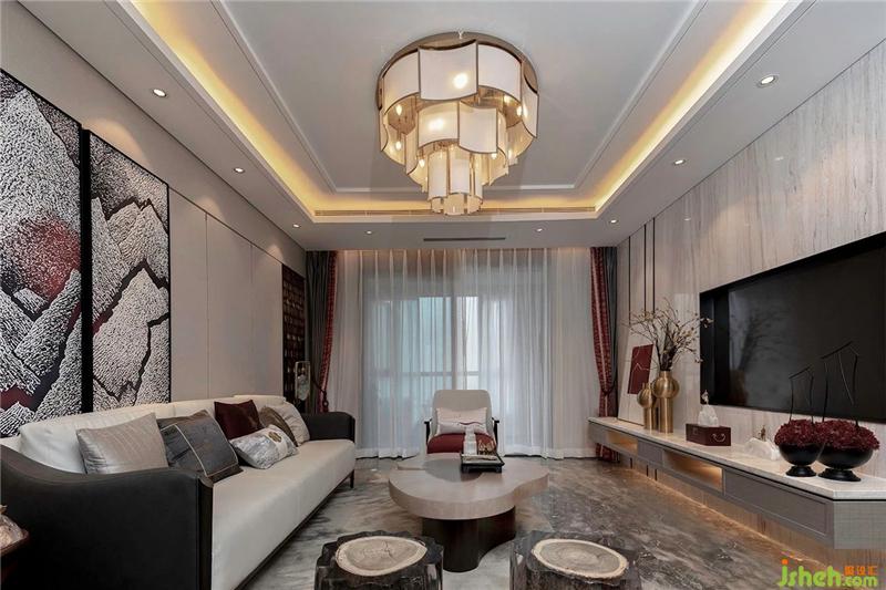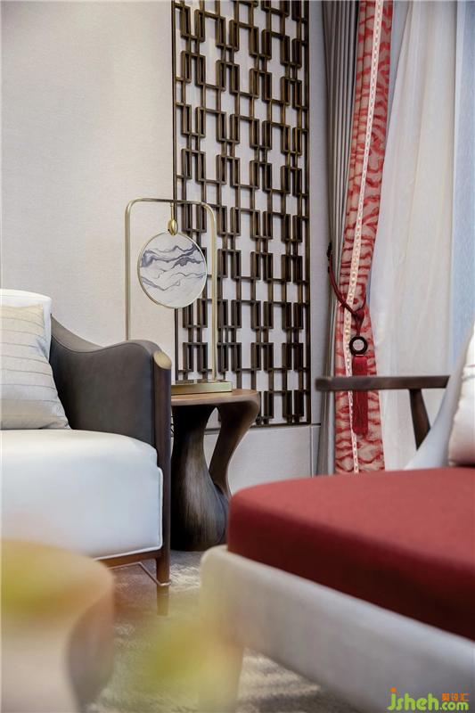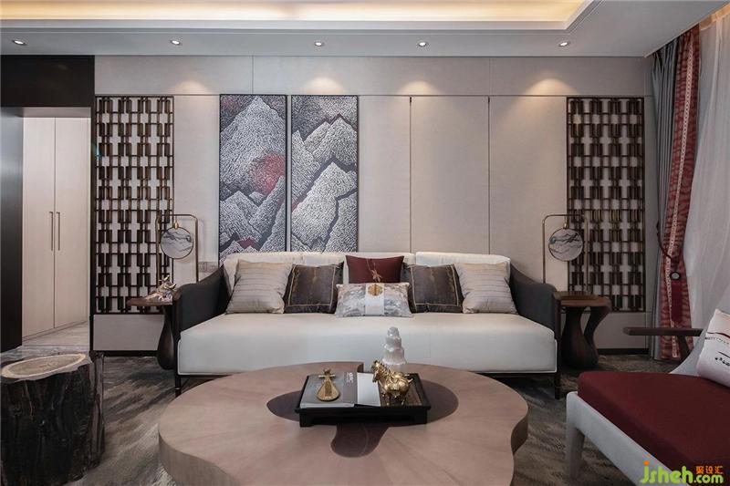 Stepping into the living room, it seems to be separated from the bustling capital city, roaming in the painting: tea white fresh, cinnabar tough, one stroke of quaint extraordinary. The use of a variety of fabric textures makes the living room comfortable and gentle, while the simple log coffee table is decorated with modern metal textures to make the visual effect rich.