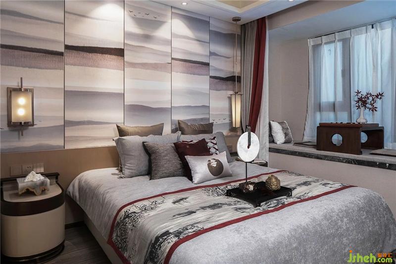 主臥背景墻水墨畫意境清麗雋永,完美呈現(xiàn)靜謐典雅的氛圍?!办o默中自有廣闊天地,在有限中也能寧靜致遠(yuǎn)”的力量感赫然呈現(xiàn)。古中國的風(fēng)韻,經(jīng)過了時間與空間的流轉(zhuǎn),在住客棲息之所落足。樣板房設(shè)計