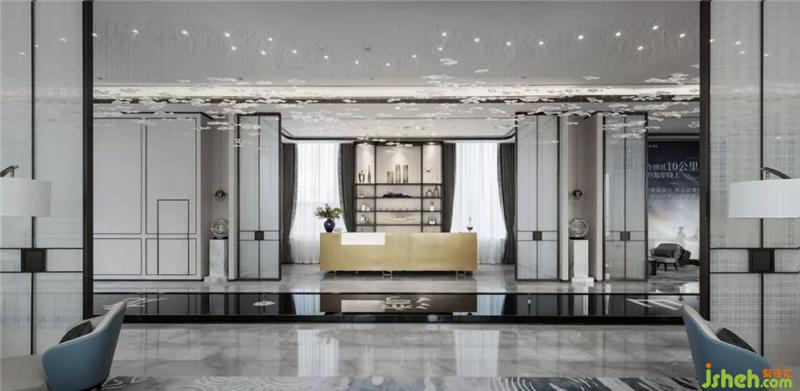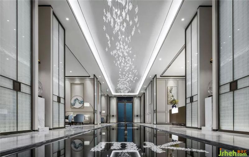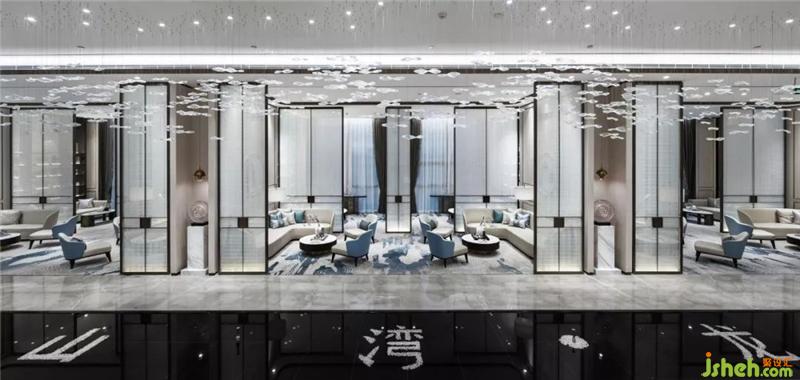 跟隨著“海洋中-水”元素的蹤跡來到洽談區(qū),大型藝術(shù)“流水”水晶吊燈和“水波”藝術(shù)裝置,在光的巧妙融合下,將波光粼粼的柔情溫雅刻畫入微。
