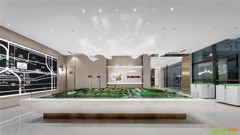 渤海灣口區(qū)的的這片海,又該如何去呈現(xiàn)呢?沙盤區(qū)中心的吊頂上,數(shù)以萬計(jì)的水晶如飛濺的浪花,匯成軍港的這片海洋,水晶透過光的折射和反射,像極了波光粼粼的海面,同時(shí)又充滿了戲劇性的張力和生命力。室內(nèi)設(shè)計(jì)師