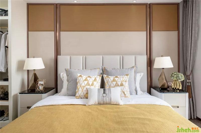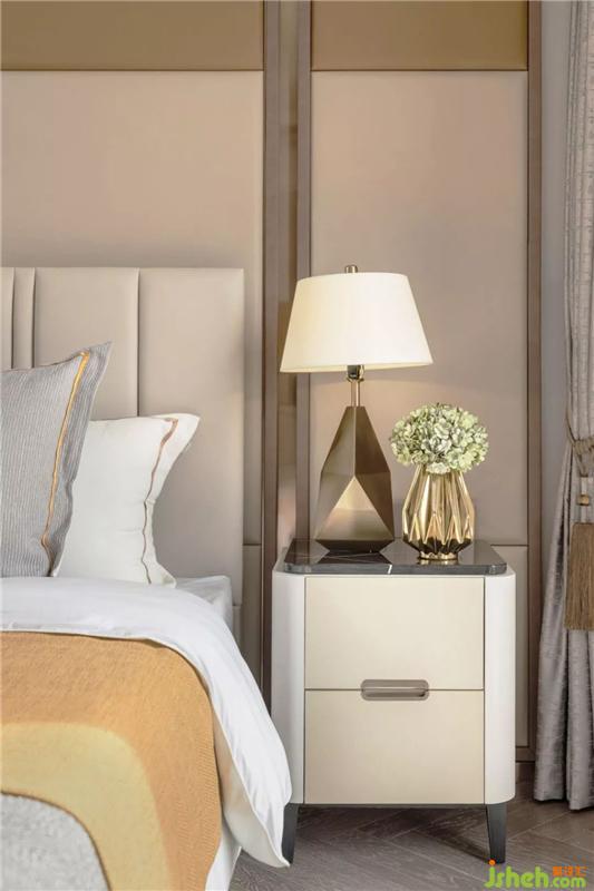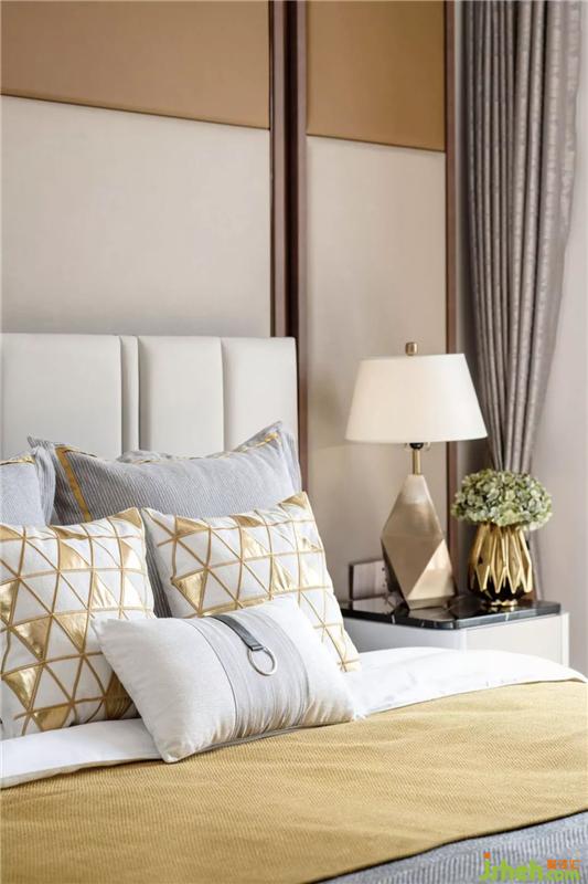 主臥延續(xù)了整體空間的色調(diào),大地棕色點(diǎn)綴金屬色,在主臥空間中顯得含蓄,靜謐。窗外景色正好,樹(shù)梢頭上,鳥(niǎo)兒淺唱,安謐意境莫不靜好,營(yíng)造出家的溫暖舒適之感。
