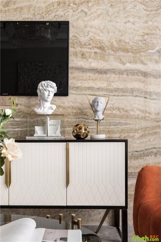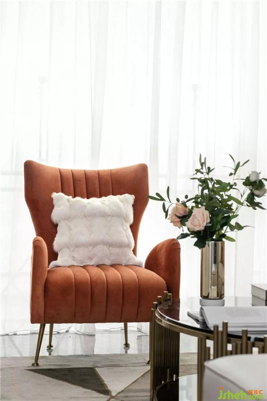 The project is dominated by beige, with orange embellishment to make the whole space more lively and vivid. The materials are mainly high-grade leather, fabric, solid wood and metal, creating a luxurious yet exaggerated, elegant and exquisite style.