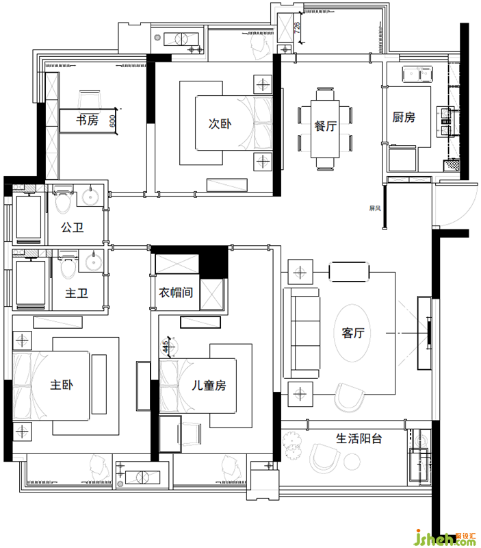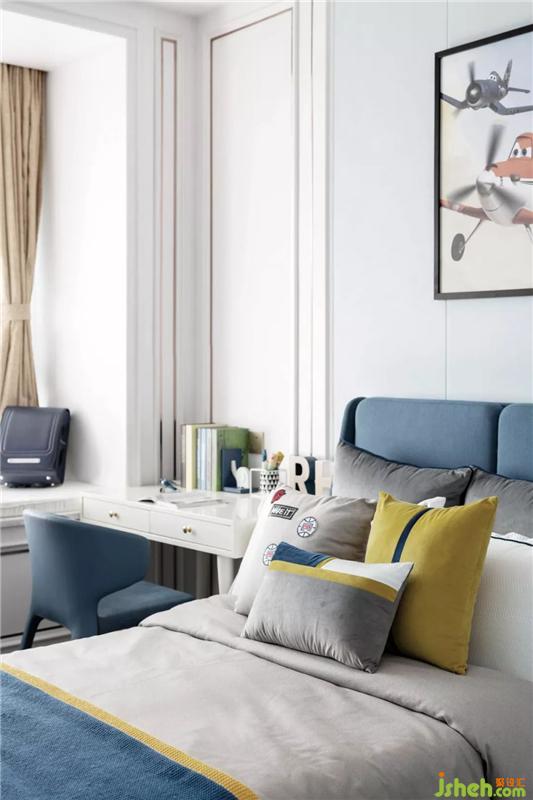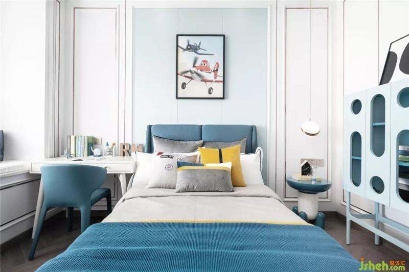 The children's room is the theme of the plane, and "Plane Story" is very dreamy, it makes people feel incredible and touches the mind. Bring strong, brave, and helpful ideas to children; meanwhile, the decoration on the walls also uses airplane shapes, adding a lot of fun to the entire room.