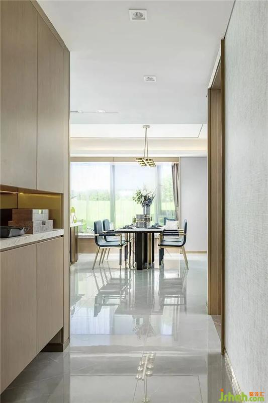 The color of the project is based on the metallic yellow and light gray lines, and the gray but bright blue system is added. The ripples do not lose the warmth of the home, at the same time the blue of the lake in Hangzhou and the yellow of the sunset.