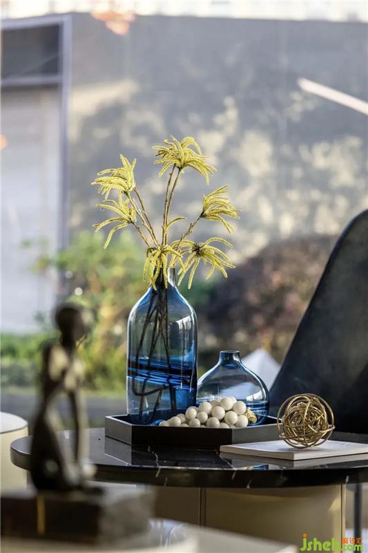 選用了這款紐約照明工作室APPARATUS設(shè)計(jì)這款玻璃和金屬結(jié)合充滿節(jié)奏感的吊燈,吧臺(tái)上點(diǎn)綴水滴造型的盆栽,增添東方儀式感。裝修設(shè)計(jì)