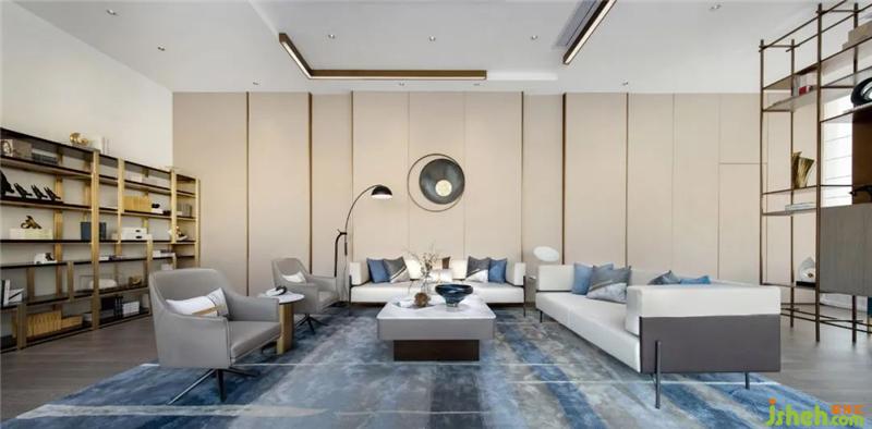 VIP room is a private space for in-depth conversation among key customers, prospective customers and contracted customers. According to different functional requirements, different furniture combinations are provided to meet the needs of a group of MINOTTI leather sofas, single chairs and square stools that the extended family came to discuss. The tea tables with metal and stone materials collide with each other to enhance the elegance and luxury of the space with blue and gold ornaments.