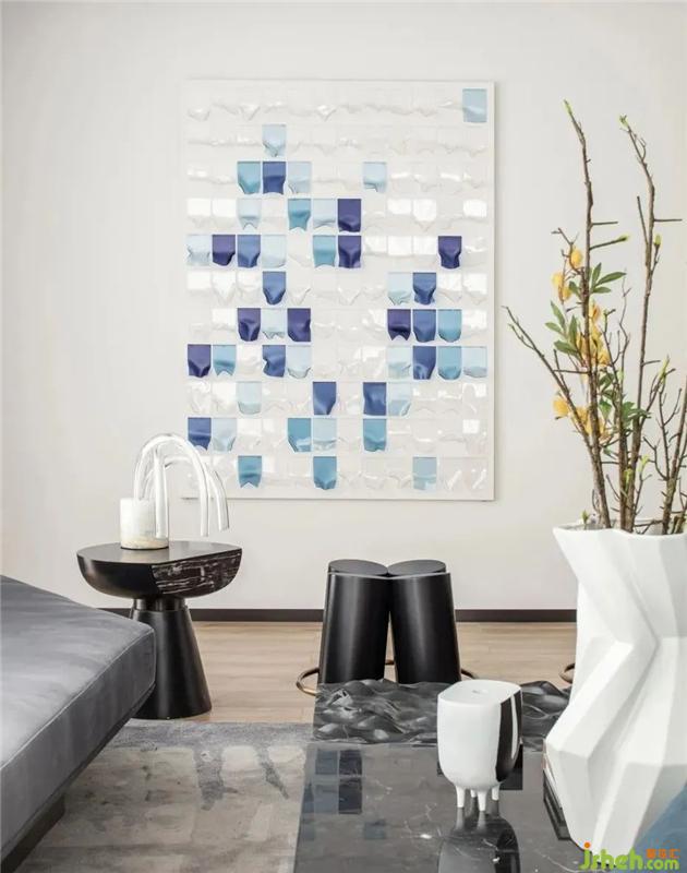 水的藍(lán)色印象,在光波振動(dòng)下,水藍(lán)、湖藍(lán)、水綠與灰色微妙結(jié)合
