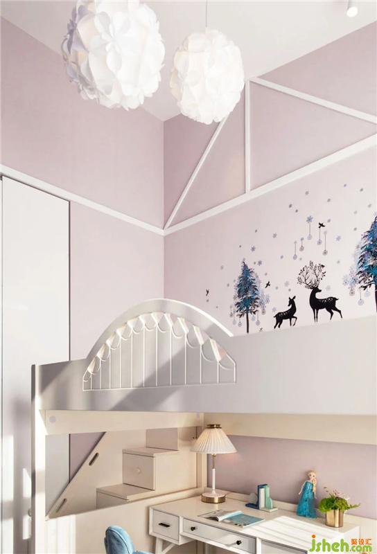 兒童房完全營造了《冰雪奇緣》的奇幻場景?!懊半U”、“歡樂”、“拯救”、“真愛”等主題,在空間中處處體現(xiàn)。