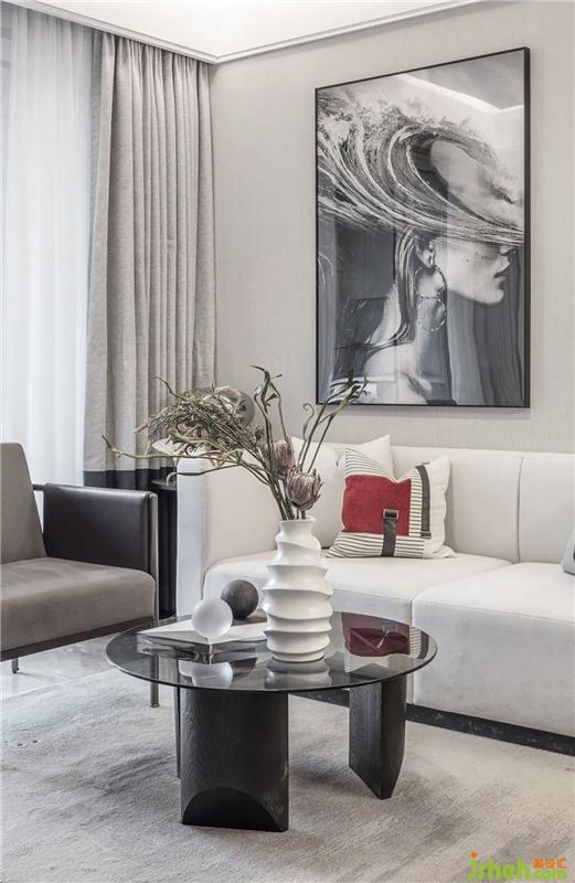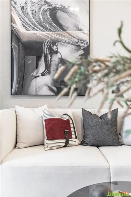 The furniture of the living room is simple and capable. The main colors of black, white and gray are embellished with a touch of gray and red, without losing the sense of modern urban fashion. Lazy lying on the sofa in the early morning or afternoon, the sun sheds through the glass, throwing in the living room a dappled light and shadow, the still shadow is on the wall, so intoxicating.