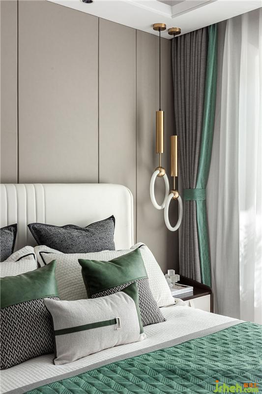 主臥溫馨且大面積運(yùn)用淺色的木飾面,樣板房設(shè)計(jì)以雅致淺灰色基層色調(diào),春意盎然的芳草綠點(diǎn)綴空間,鋪敘自然質(zhì)樸的樣貌。繁與簡(jiǎn),理性的邏輯中內(nèi)涵自然與人生的哲理。