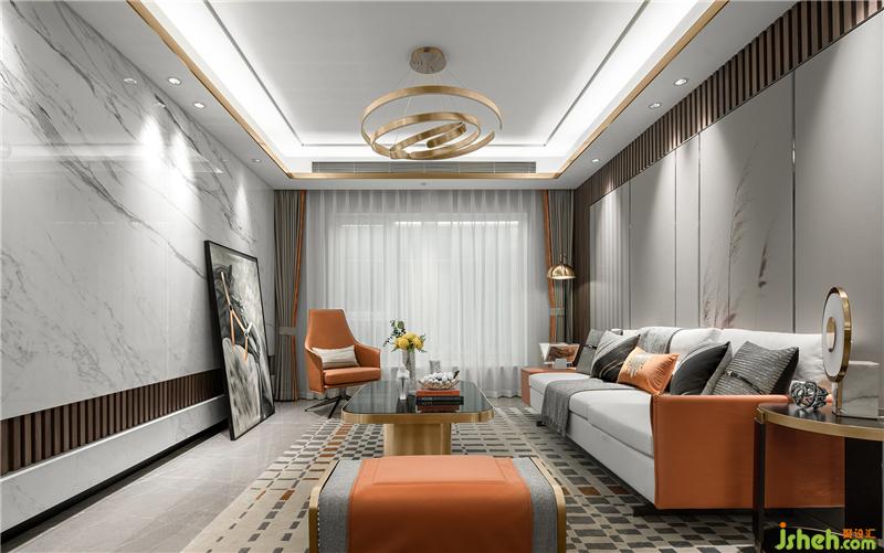 樣板房設(shè)計(jì)在原有硬裝的灰色基調(diào)里加入高貴的橙色,讓整個(gè)空間色彩豐富溫馨治愈,大理石、皮革、金屬、布藝、胡桃木等材質(zhì)的運(yùn)用融合,提升了空間的品質(zhì)感。