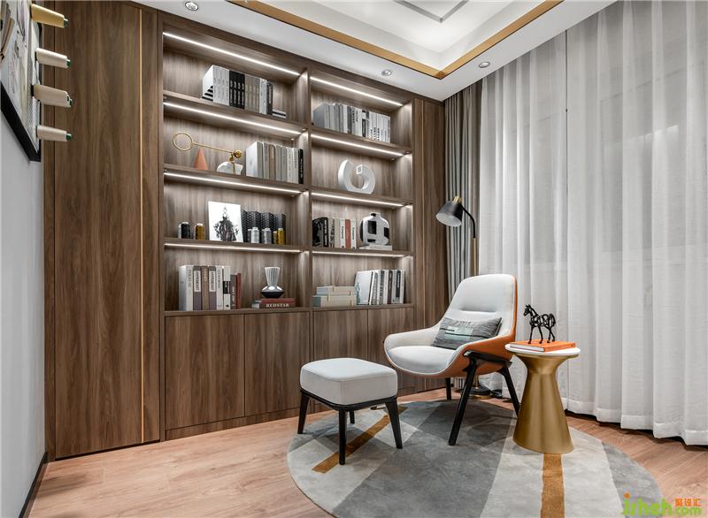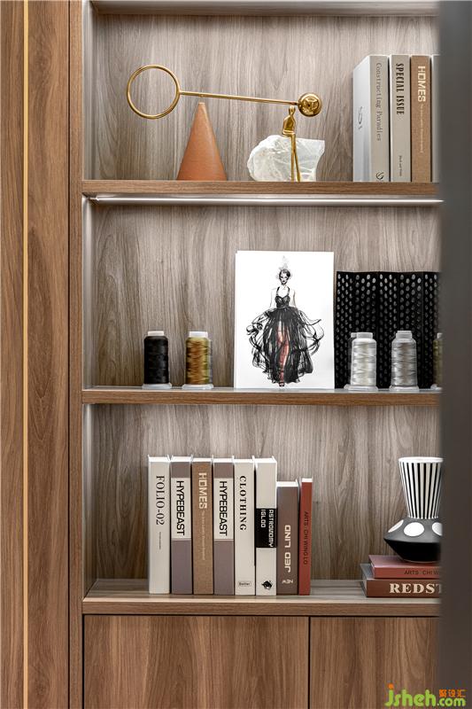 書房以女主服裝設計師職業(yè)為切入點,樣板房設計在營造不凡藝術格調的基礎上,為她建立一個相對個人化的、豐盈的精神世界。在書房里,聞著書香,探索精神文化的實質,心靈的回歸。