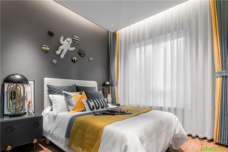 兒童房營造遨游太空,穿梭于星際間捕捉夢影的場景。想象銀河里藏匿著數(shù)億光年的秘密,群星璀璨的令人著迷神往。