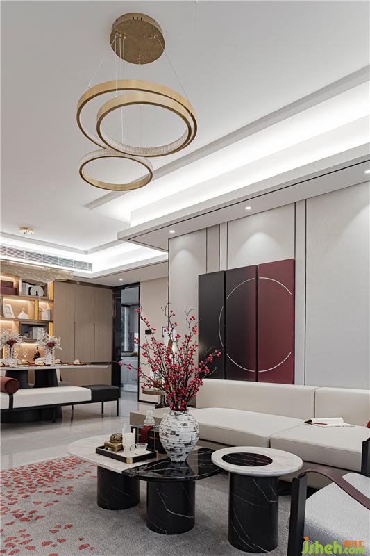 整體素雅的淺色調(diào)營造輕松的氣氛,紅色的抱枕及藝術(shù)掛畫為視覺與觸覺帶來記憶,這抹紅亦或朝暉,亦或晚霞,點(diǎn)綴得恰到好處,與有序排列的精致餐具相輔相成,體現(xiàn)主人對于生活品質(zhì)的追求。