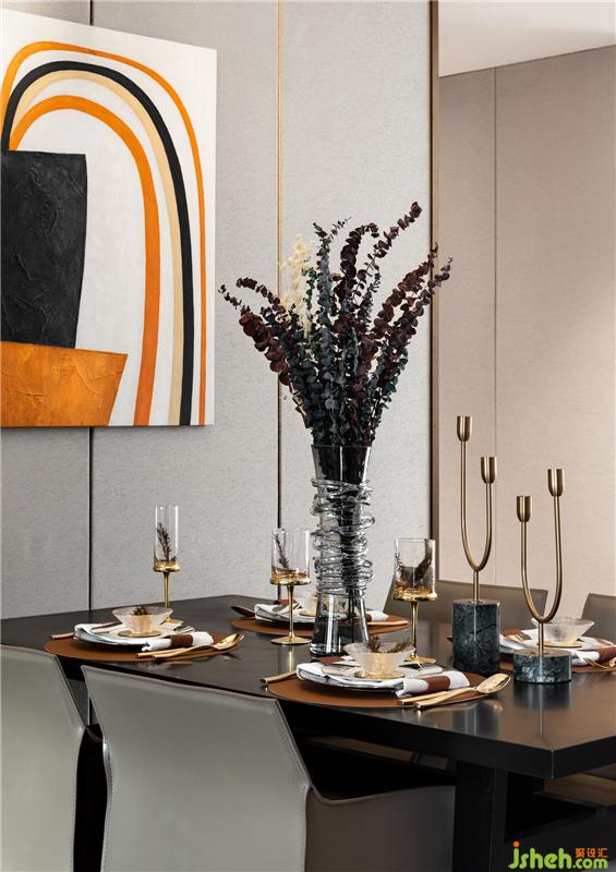 牽掛如山,還有一水之隔,搖晃思念,滴答滴答,相聚終有時(shí)??臻g以黑白灰為主色調(diào)、金色、咖色與藍(lán)色點(diǎn)綴。運(yùn)用高級布藝、大理石、優(yōu)質(zhì)皮革以及金屬材質(zhì)。以黑白灰為主色調(diào),咖色作為點(diǎn)綴色的現(xiàn)代風(fēng)格布置下使人有一種溫馨的感覺。